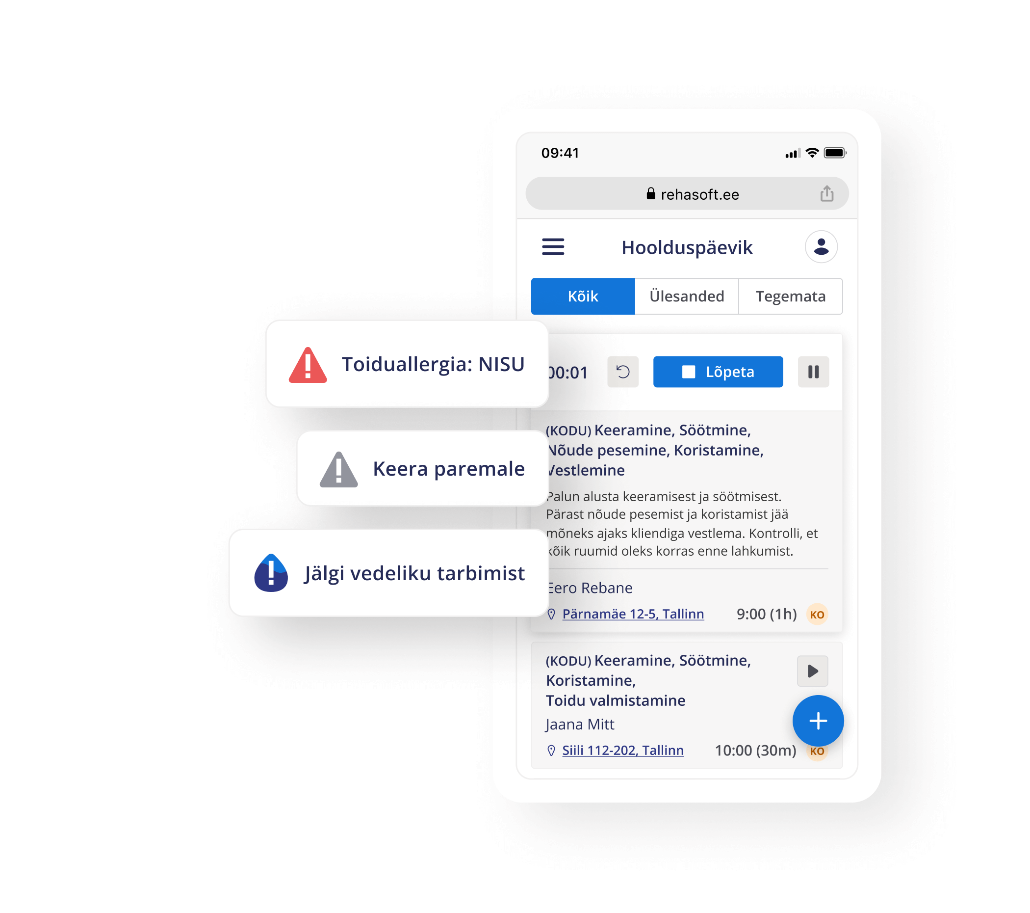 Hooldajad saavad igapäevase töö mugavalt ja turvaliselt dokumenteerida – info liigub kohe ka juhile.